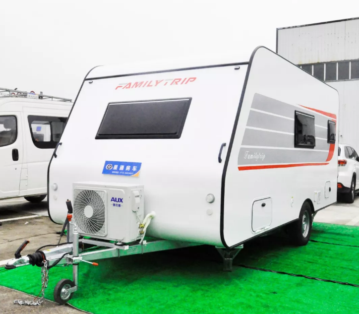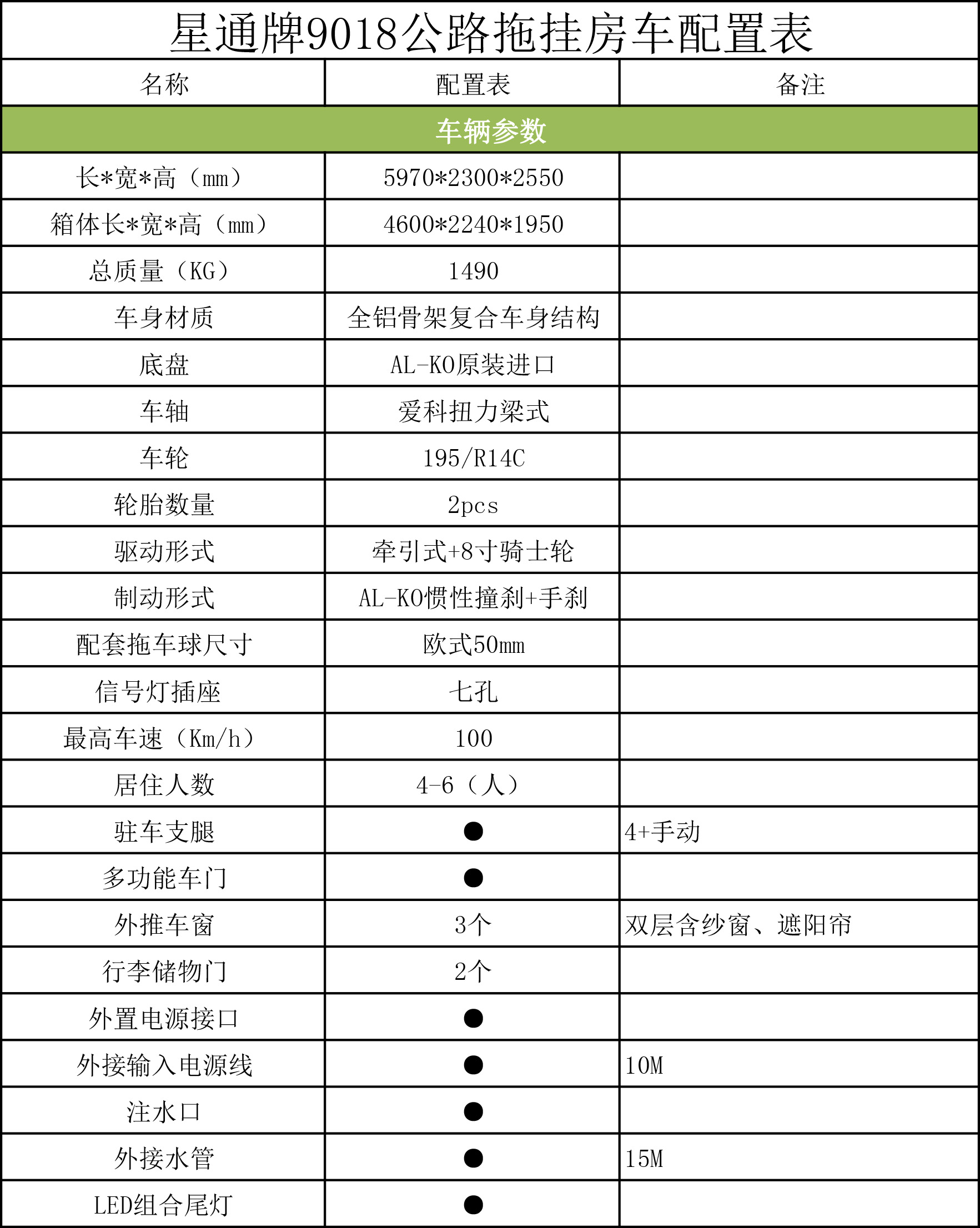 XTP9018拖挂房车灵活易控,整车尺寸5990*2300*2550mm,采用AL-KO原装底盘,惯性撞击刹系统,车速可达100KM/h。
