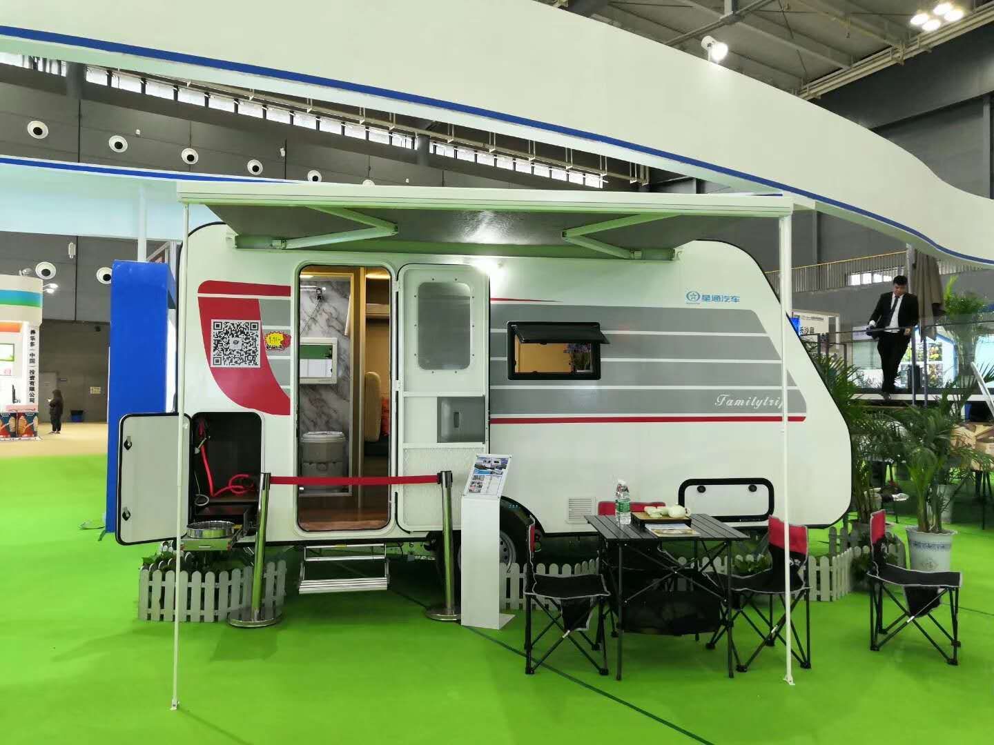 星通XTP9018拖挂房车使用全铝骨架复合车身结构,选用铝合金与pvc夹心三明治箱板,起到隔音、保温的效果,EO级家具材料无气味,整车总质量才1380kg,1.6排量以上的车就可拖拽,易开好停便于操作。