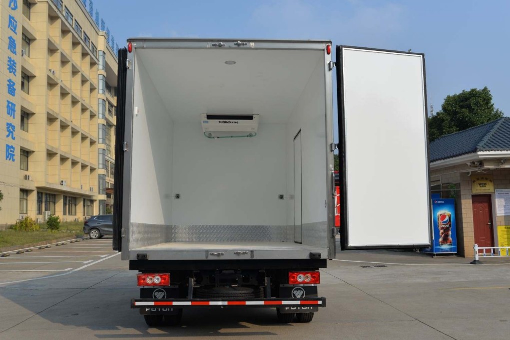 第一部分是底盘采用福田专用冷藏车底盘、配置康明斯国六发动机,动力足、性能稳定、节油环保。