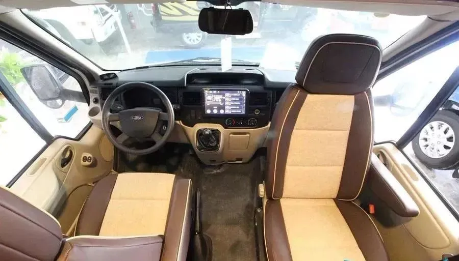 采用福特底盘,2.2T柴油涡轮增压发动机搭载6速手动变速箱,整车尺寸5995*2365*2930mm,最高车速达150km/h,最大马力135ps、最大功率100kw、最大扭矩350Nm,国五排放标准。