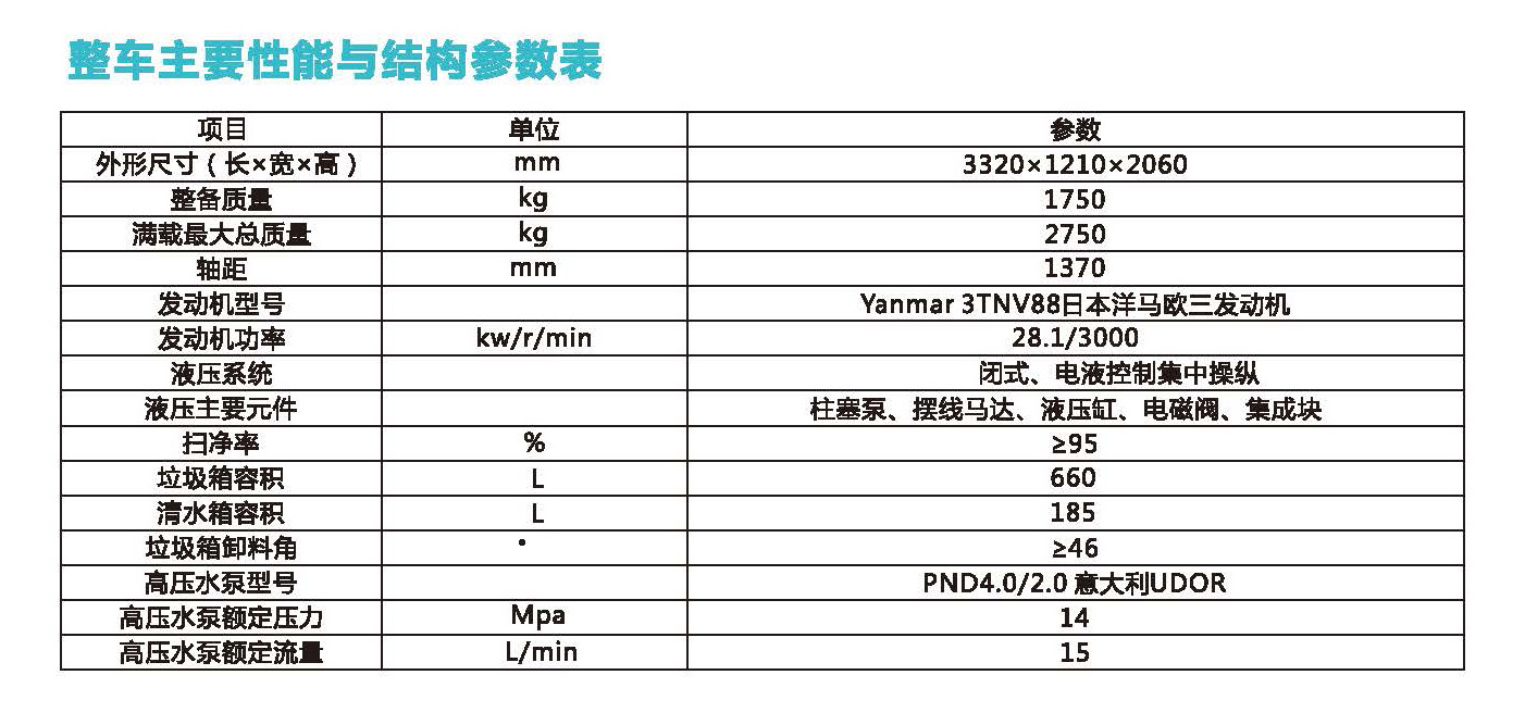 车型简介: 具有路面清扫、高压清洗、污水循环利用等功能。适用于城市辅道、狭窄道路、非机动车道、人行道、步行街、风光带、公园、学校、景点、居民生活小区等大型扫路车无法或不方便进入区域。