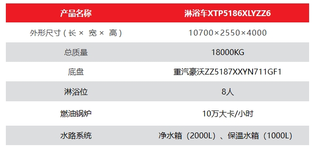 我司根据国家相关标准,结合应急保障系统的现状和实际作战需要,充分利用车辆的有效空间,合理布置各种淋浴设备,从而满足野外条件下淋浴洗漱。淋浴车采用中国重汽豪沃ZZ5187XXYN711GF1型4x2二类底盘作为载车平台进行改装。整车具有良好的行驶性能和高可靠性的安全保障,机动性强,平顺性好。整车采用厢式车的结构形式,可满足8人同时淋浴要求,配备供排水系统、净水系统、供配电系统、燃油锅炉系统、换气系统、照明系统等功能设施。为在处置突发事件、自然灾害事故和重特大安全保卫、警卫等各种现场提供淋浴洗漱保障。