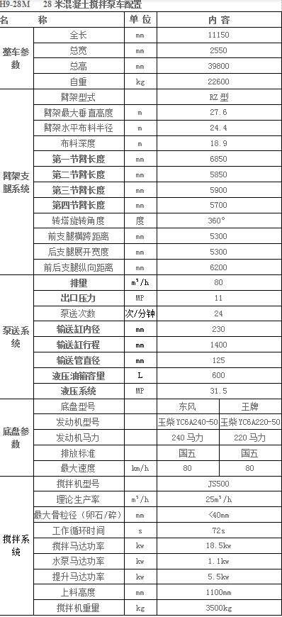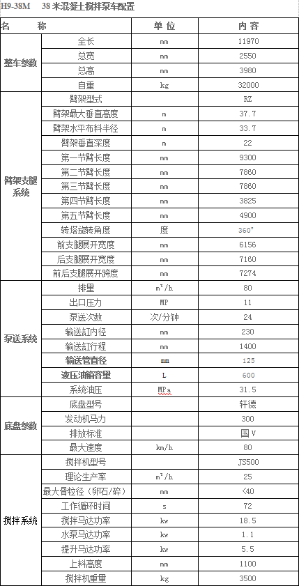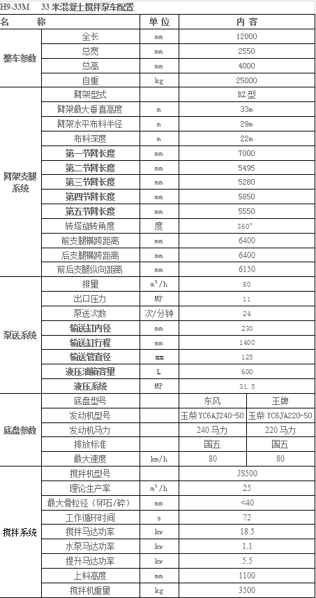 28米、30米、33米、38米三款,配置参数表如下: