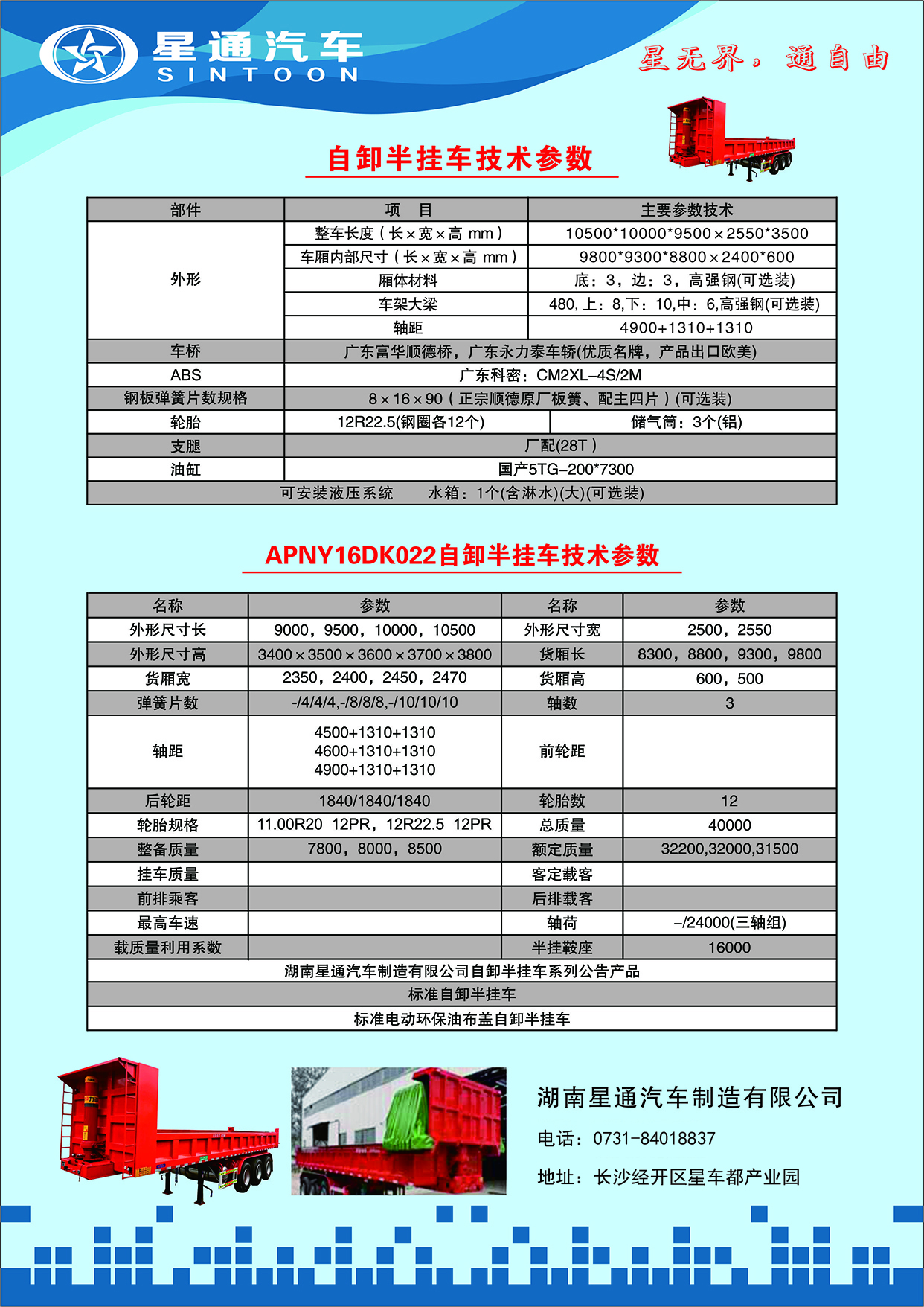 自卸式半挂车适用于煤炭、矿石、建筑物料等散装零散货物的运输。 本自卸半挂车采用正厂配件,板材均采用700高强钢,箱体关键部位纯满焊,箱体两侧边板从下至上为满板设计形成方管结构。